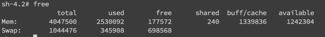 内存问题排查起来相对比CPU麻烦一些,场景也比较多。主要包括OOM、GC问题和堆外内存。一般来讲,我们会先用free命令先来检查一发内存的各种情况。